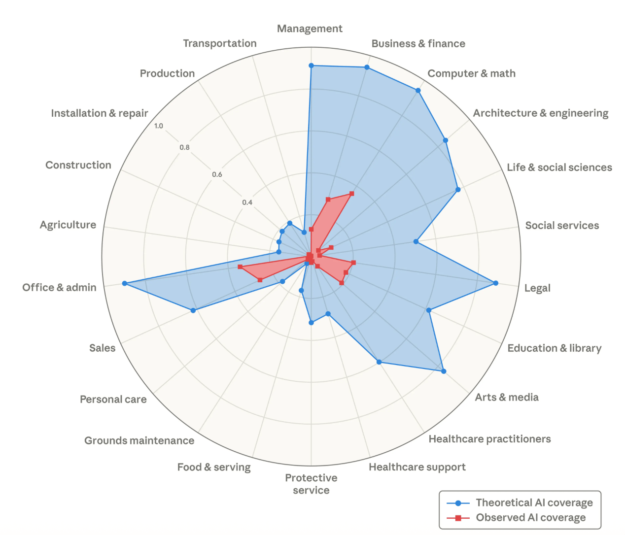 Want the details? The researchers created a metric called “observed exposure,” which looks at both what AI can theoretically do and what people are actually using AI for at work. They combined job-task data from the O*NET database with real-world AI usage data to see which occupations are most affected. Jobs like computer programming, customer service, and data entry currently show the highest exposure. However, the study also found that AI is still being used for only a fraction of the tasks it could theoretically perform. When researchers compared these results with employment data, they found no clear increase in unemployment in highly exposed jobs since late 2022.