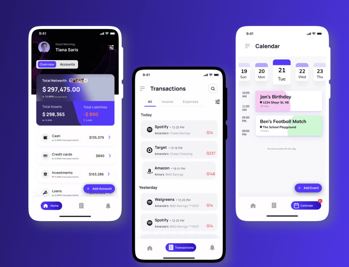 Unified transactions: All transactions from your family’s accounts are automatically categorized and displayed in one organized view.